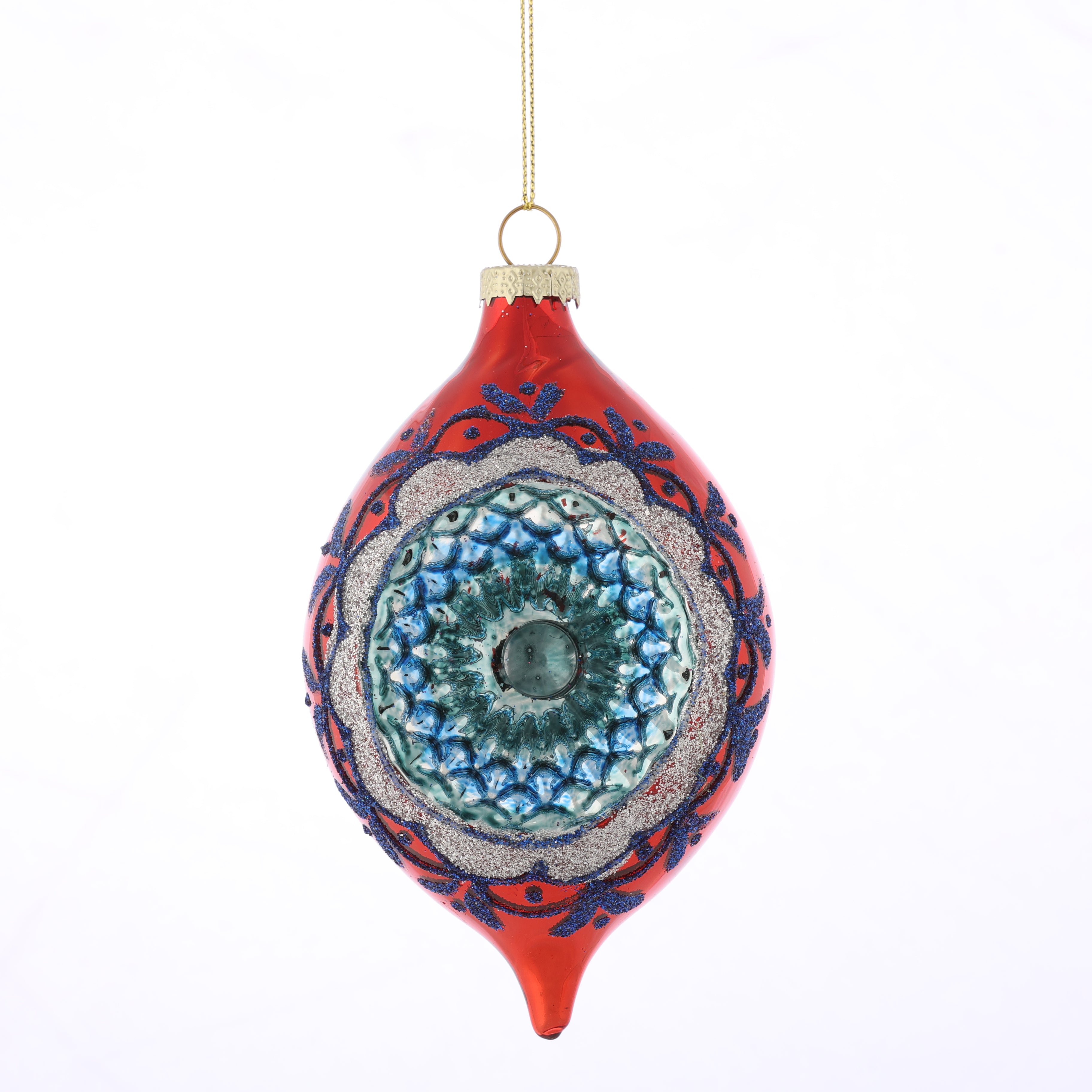 3.2"x 5" GLASS DOUBLE POINT ORNAMENT RED