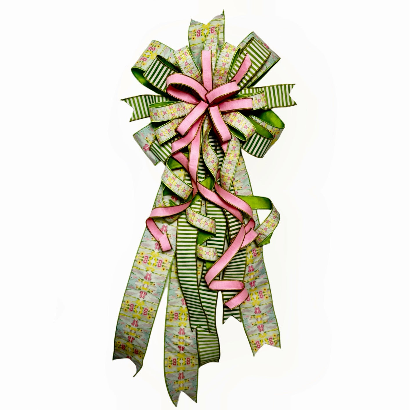 18"W X 40"L LT GREEN/PINK PRE-MADE BOW