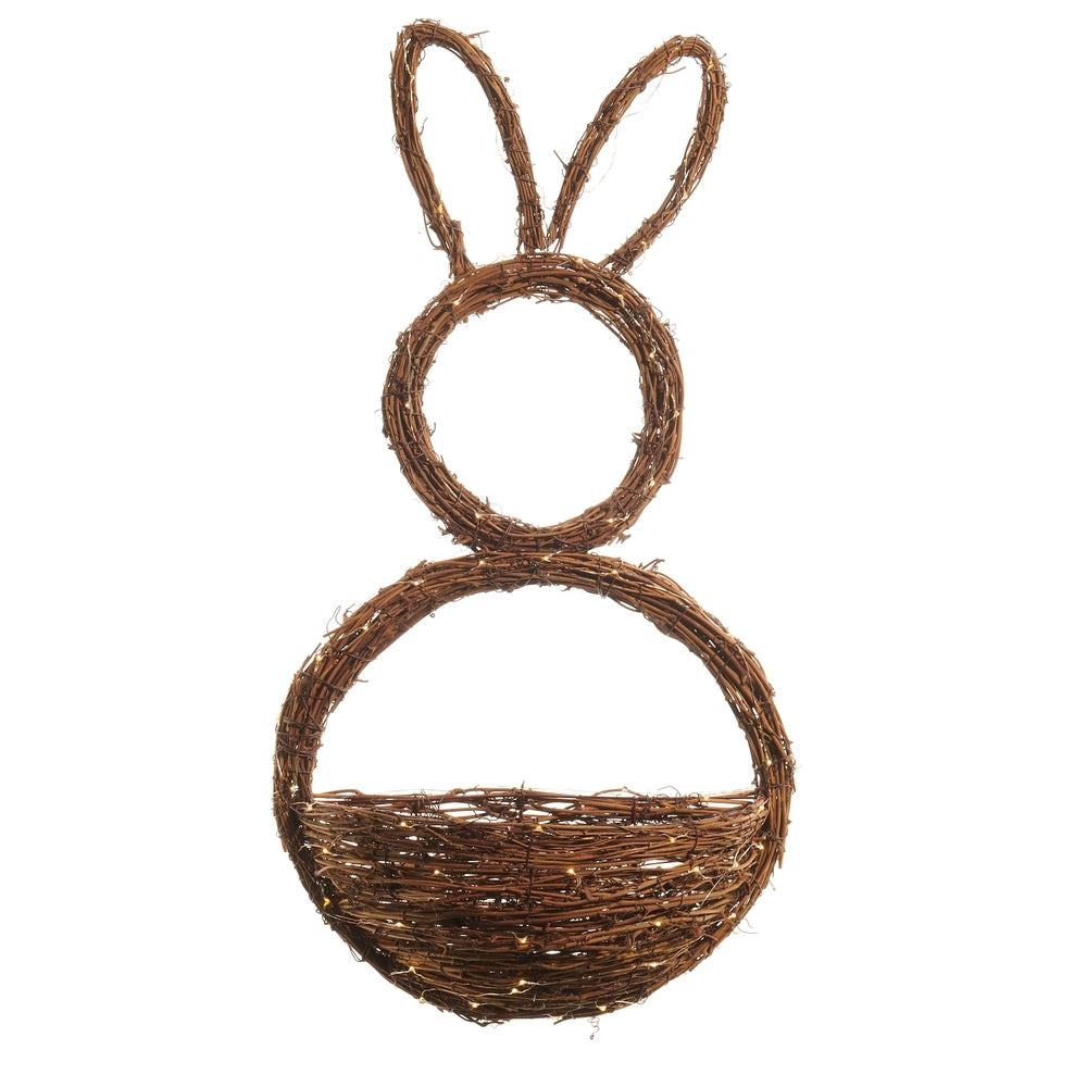28.5" Lighted Grapevine Bunny Wreath Basket