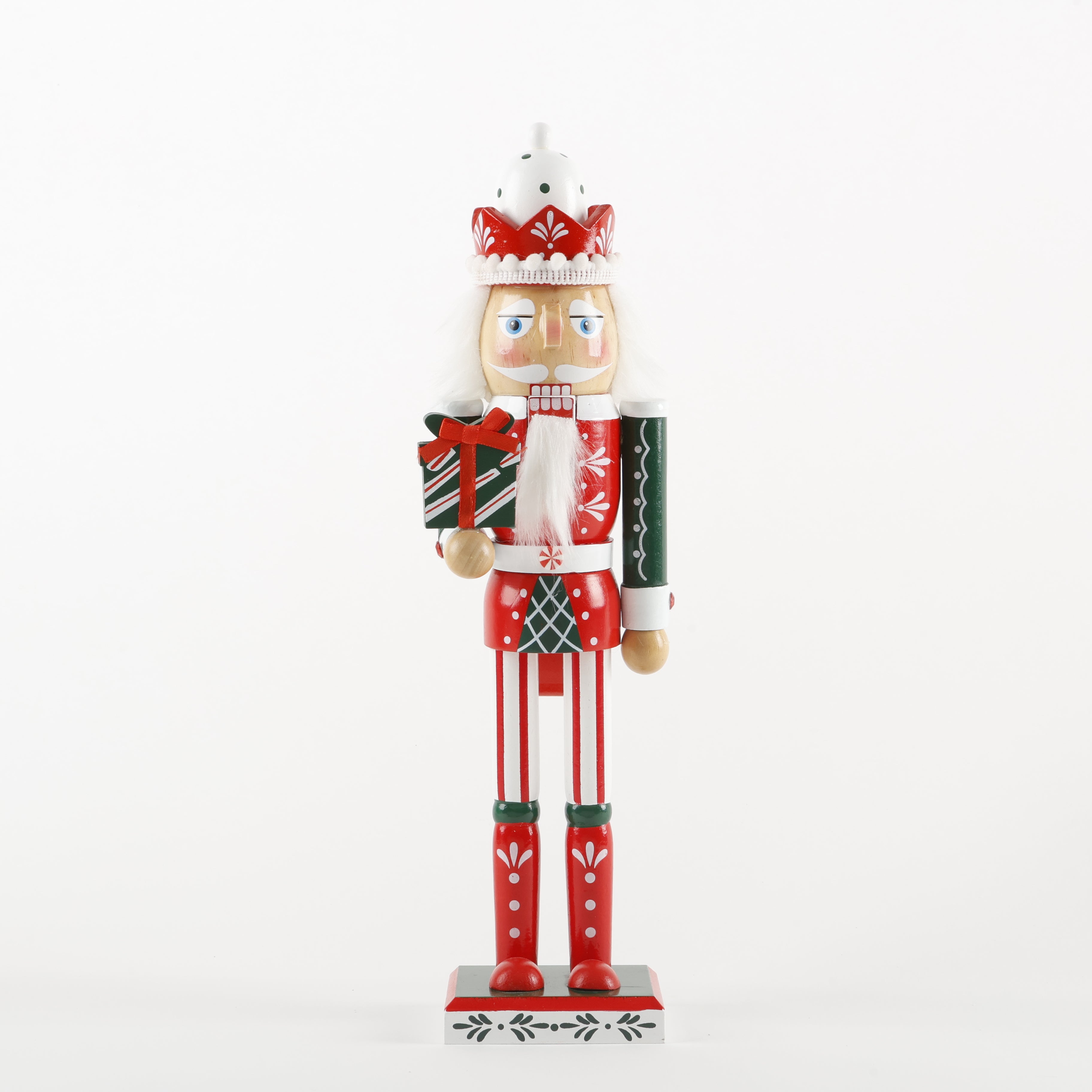 Elevate your festive decor with this 15-inch (38 cm) wooden nutcracker. Crafted for classic charm, it brings timeless holiday spirit to any room. Its sturdy wooden build ensures lasting enjoyment year after year, making it a perfect centerpiece or thoughtful gift to celebrate the season. Add a touch of tradition that captivates and delights.