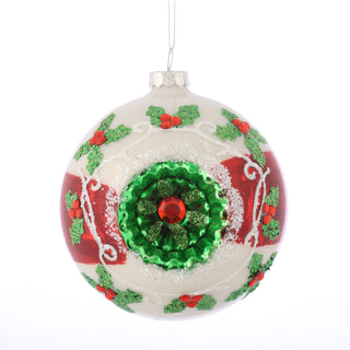 D 5"/12CM GLASS HOLLY BALL ORNAMENT