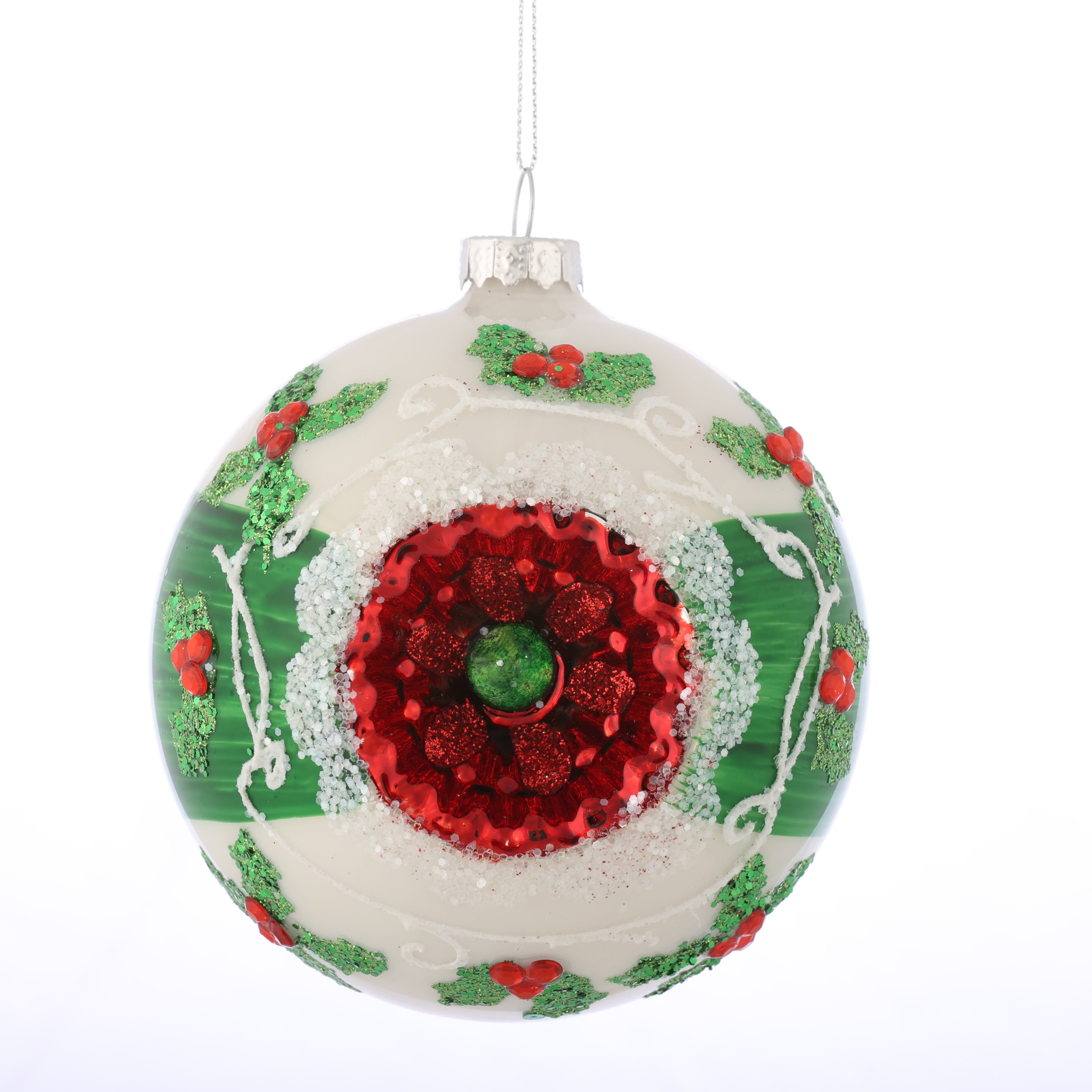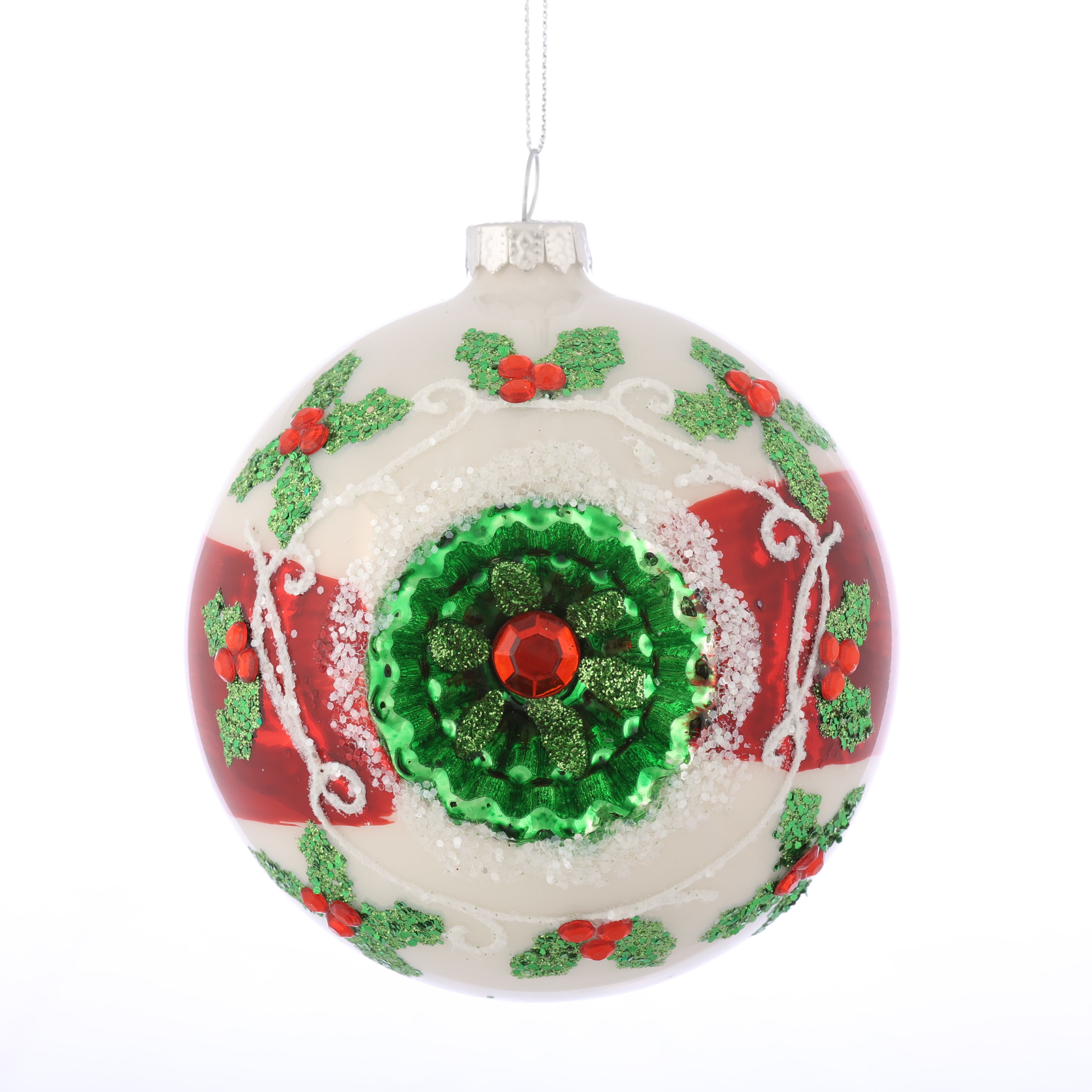 D 4" GLASS BALL Rd/Wh/Gr Reflector ORN,2 ASST