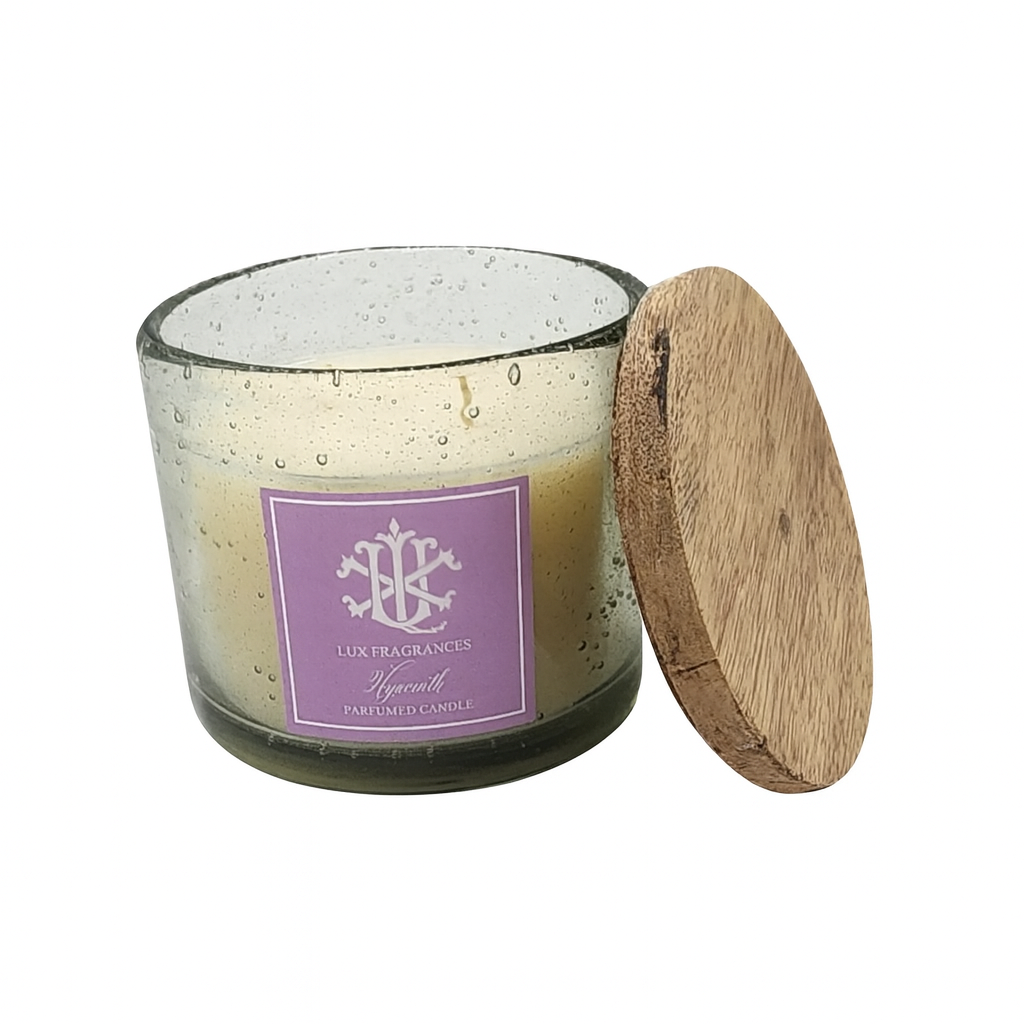 Experience the captivating allure of our Hyacinth 12 oz candle, housed in clear glass that showcases every flicker of light. The striking purple label makes an instant visual statement, while the refined stained lid ensures your candle looks as good closed as it does burning. Ideal for creating intimate moments or transforming any room into a sanctuary of calm, this beautifully crafted candle merges style with substance.
