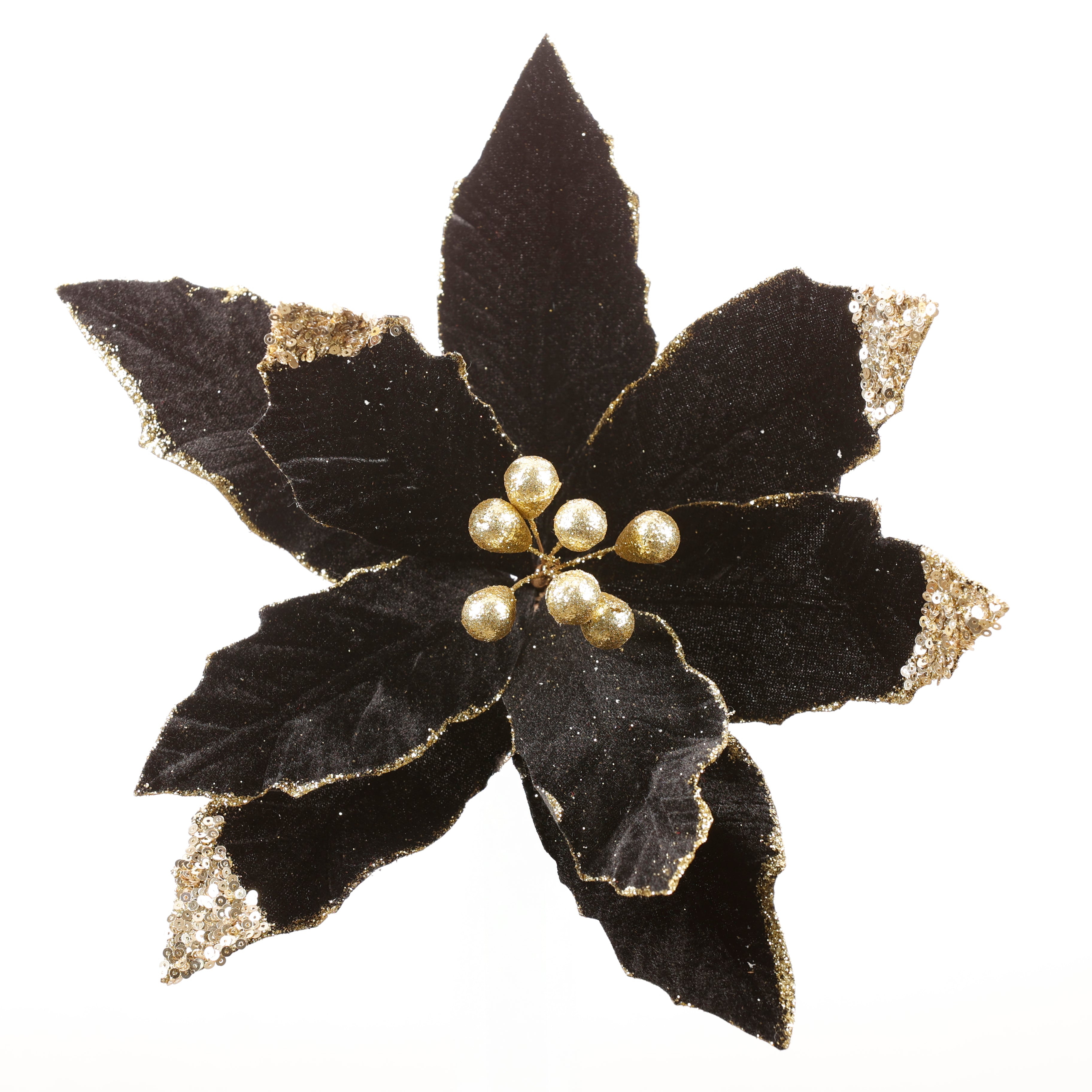 Elevate your holiday décor with this stunning 12" Black Gold Poinsettia featuring a convenient clip for easy placement. Its elegant black and gold tones add a sophisticated touch to wreaths, garlands, or centerpieces, creating a festive atmosphere with a modern twist. Perfect for enhancing your seasonal decorations effortlessly.