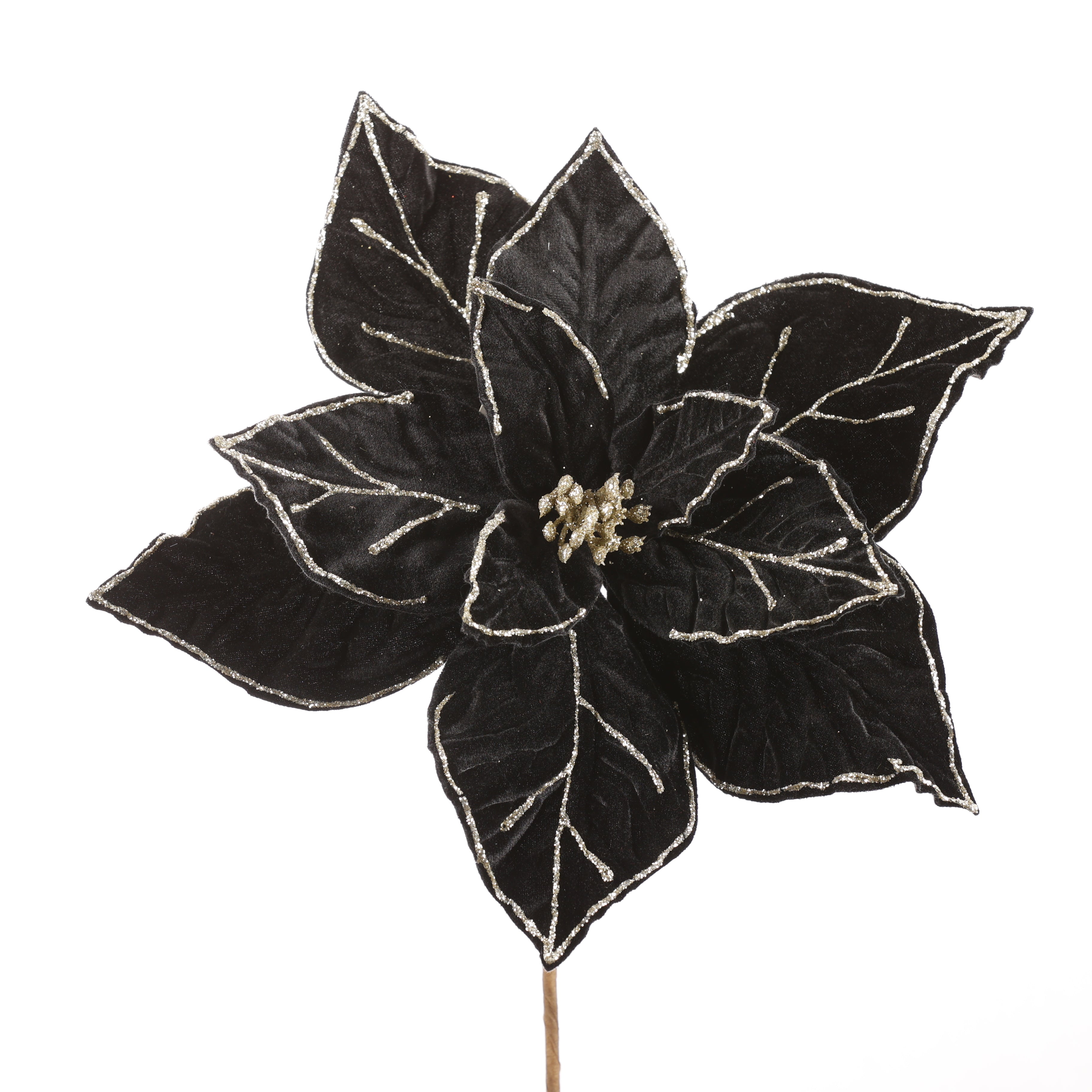 Elevate your holiday décor with the Black 22" Velvet Poinsettia Stem. Its rich velvet petals and striking black hue add a sophisticated, modern twist to traditional arrangements. Perfect for creating elegant centerpieces or accenting wreaths, this stem brings a touch of luxury and drama to any festive setting. Durable and versatile, it’s an effortless way to make your seasonal decorations stand out.