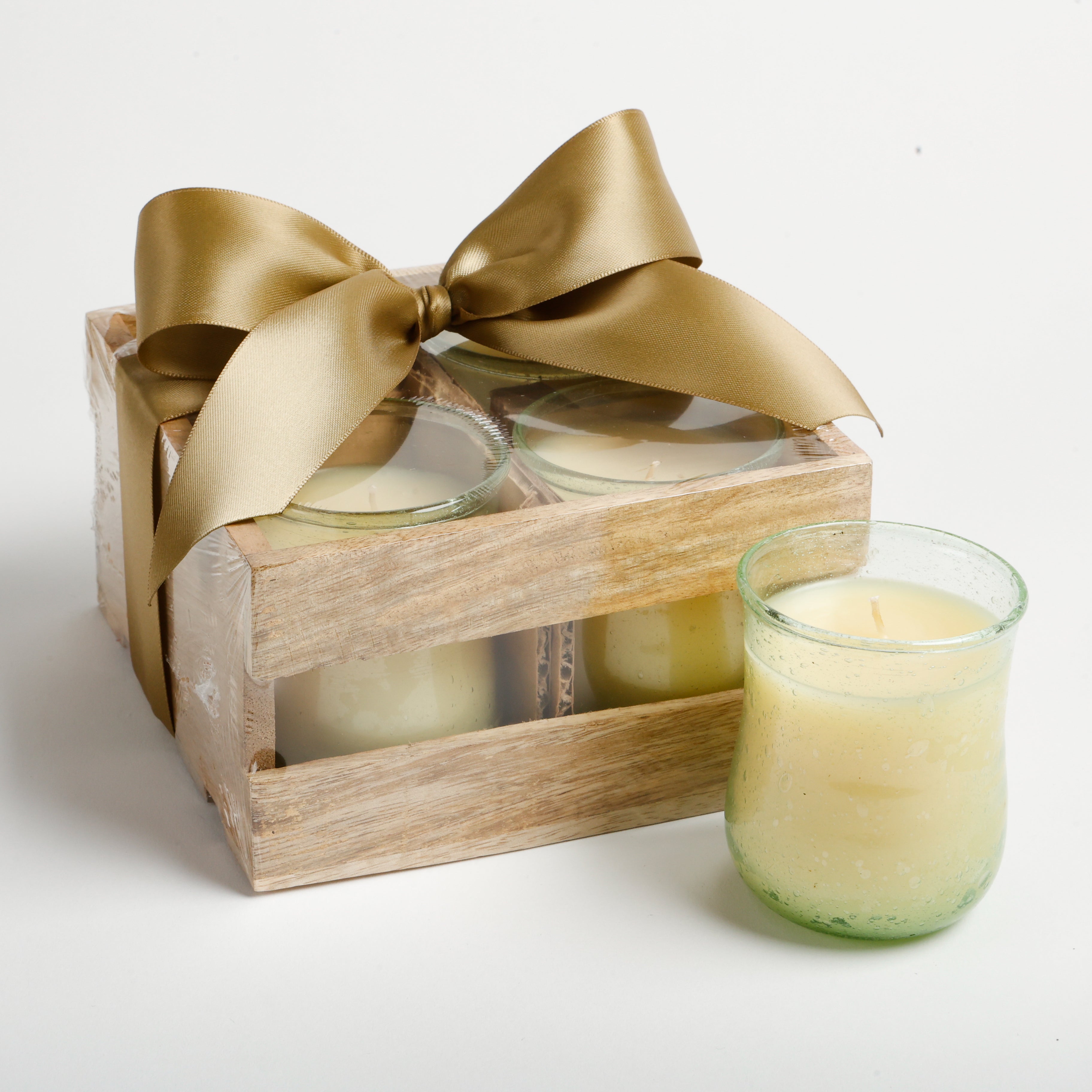 Harvest Moon Set of 4 Votives in Wooden Crate