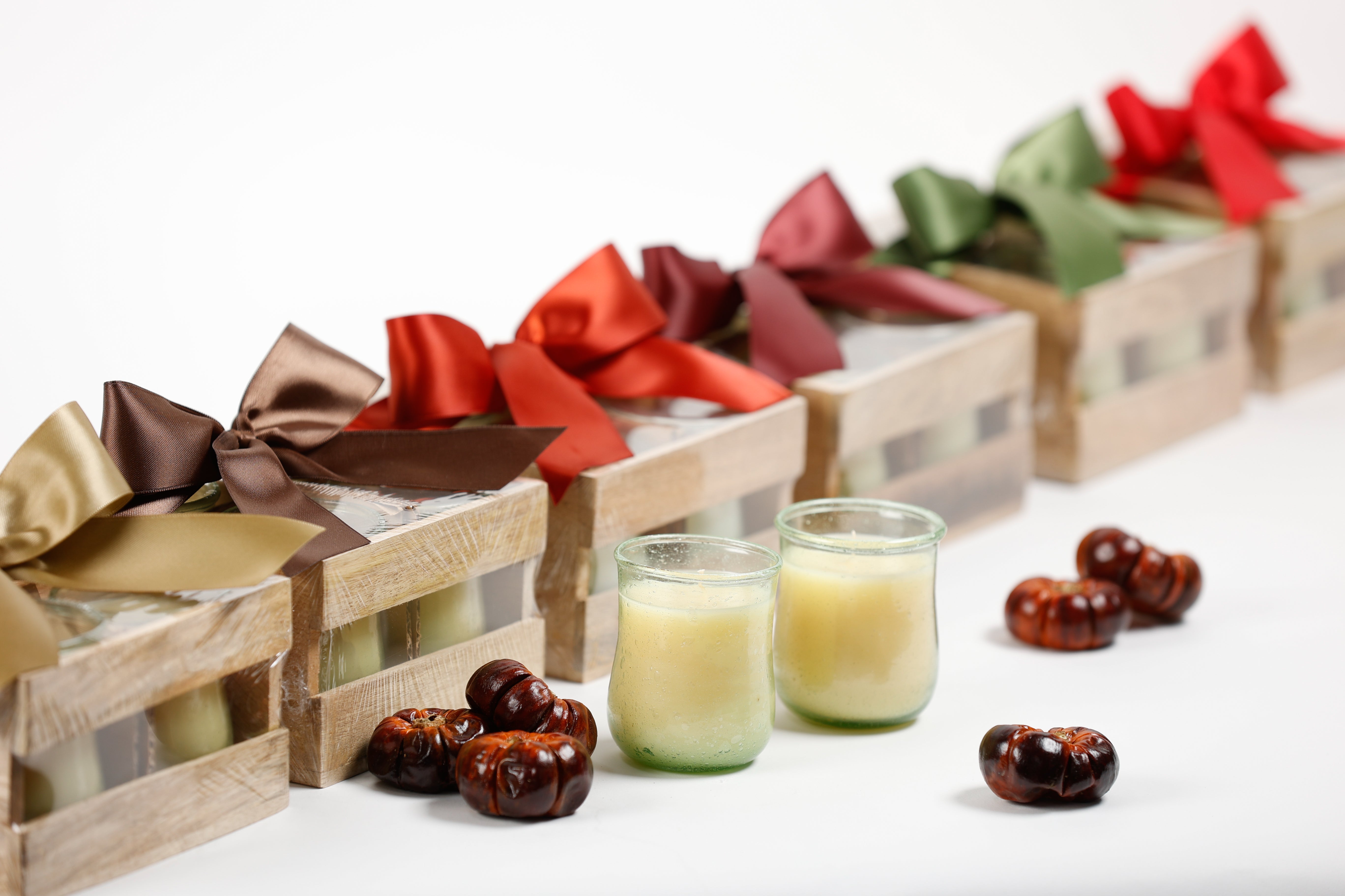 Tweed Set of 4 Votives in Wooden Crate