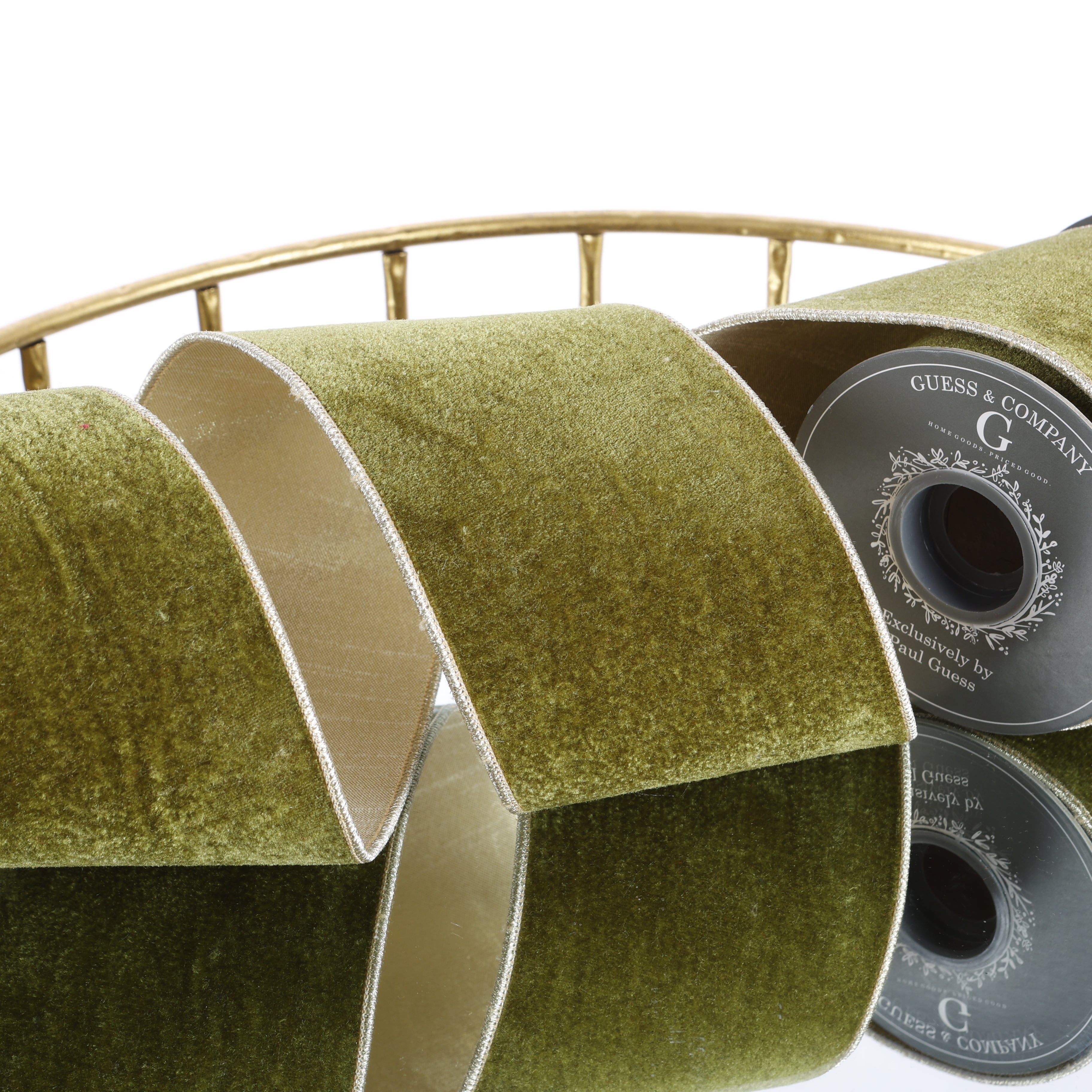 Elevate your décor with this 4" olive green plush velvet ribbon featuring a subtle light gold backing. Its rich texture and elegant color blend add a touch of sophistication to any craft, gift wrapping, or floral arrangement. Durable yet soft, it’s perfect for creating standout accents that capture attention effortlessly.