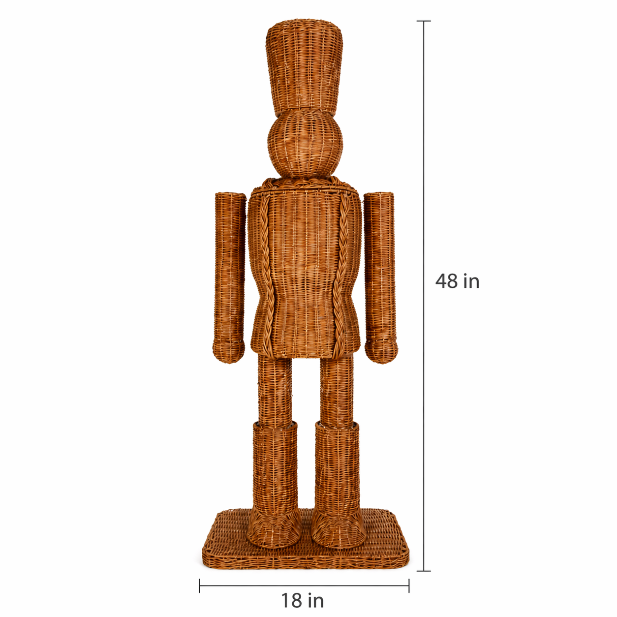FREE SHIPPING ON THIS ITEM: Bring festive charm to any space with this striking 48" poly-rattan woven nutcracker. Handcrafted from durable poly-rattan material, this decorative piece combines traditional holiday appeal with modern versatility. Perfect for indoor displays in entryways, living rooms, or seasonal décor setups, it also withstands outdoor elements, making it ideal for porches, patios, and garden displays. The woven construction adds texture and visual interest while maintaining lightweight portability. A timeless accent that celebrates the season year after year.