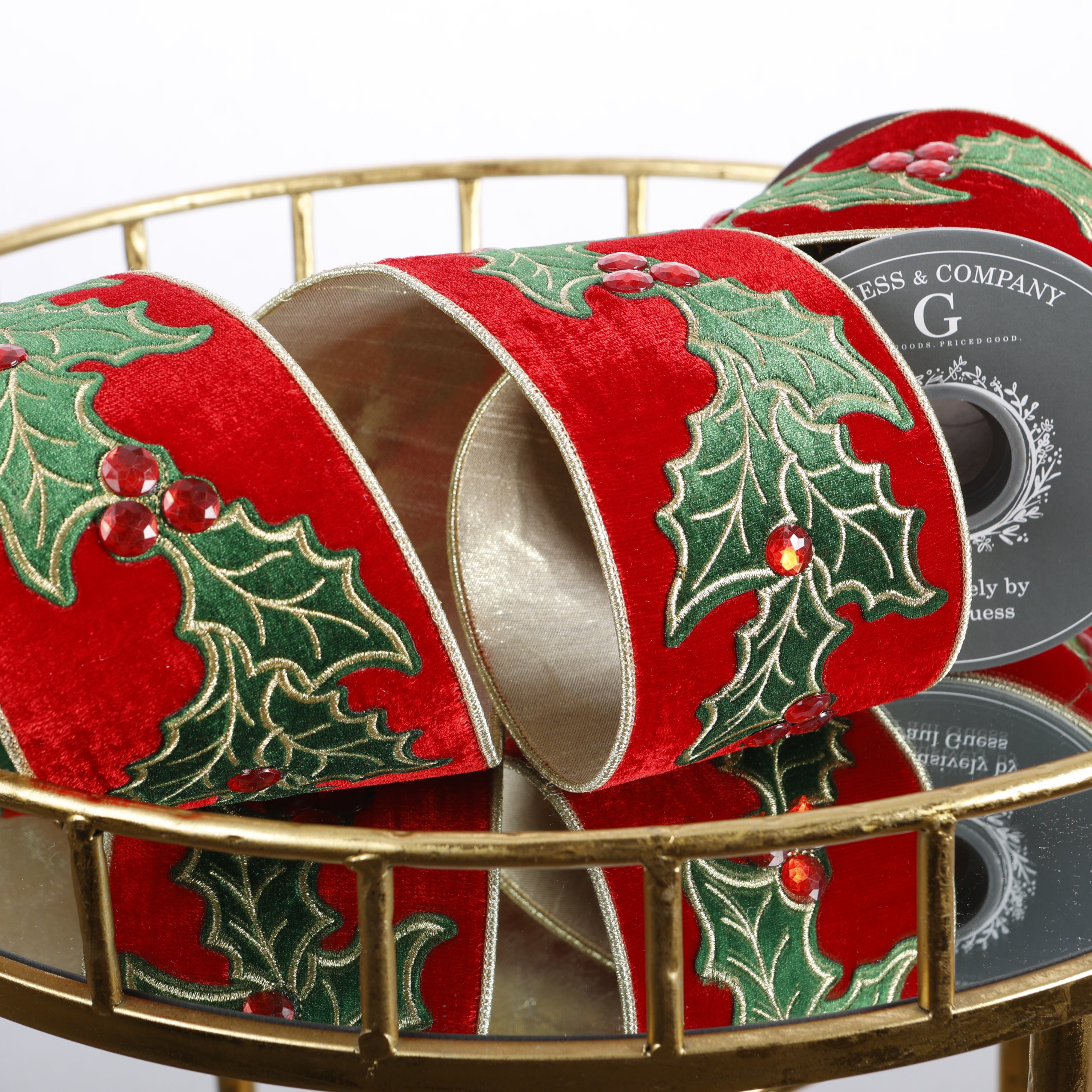 Enhance your creations with this luxurious 4" embroidery on rich red plush velvet, perfectly complemented by a light gold metallic dupion ribbon backing. This elegant combination adds depth and sophistication, making your projects stand out with a refined touch. Available for preorder, secure yours now to add a premium finish that captivates attention. Ships 10/15.