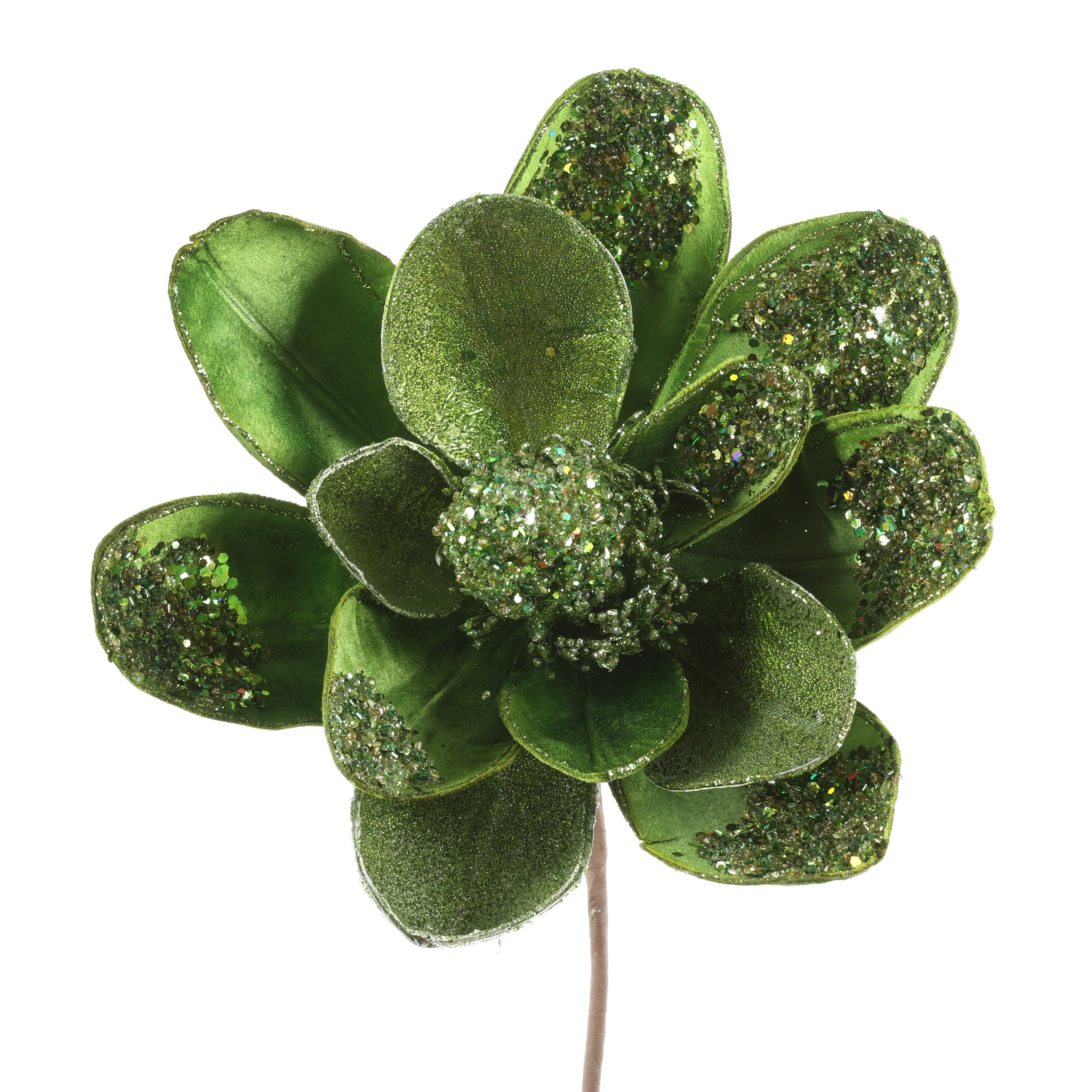 Add a touch of elegance to your decor with this 18-inch Velvet Glitter Magnolia Stem in refreshing lime. Its soft velvet petals combined with a subtle glitter finish create a striking centerpiece that brightens any room. Perfect for floral arrangements or as a standalone accent, this stem brings natural beauty and vibrant charm to your space.