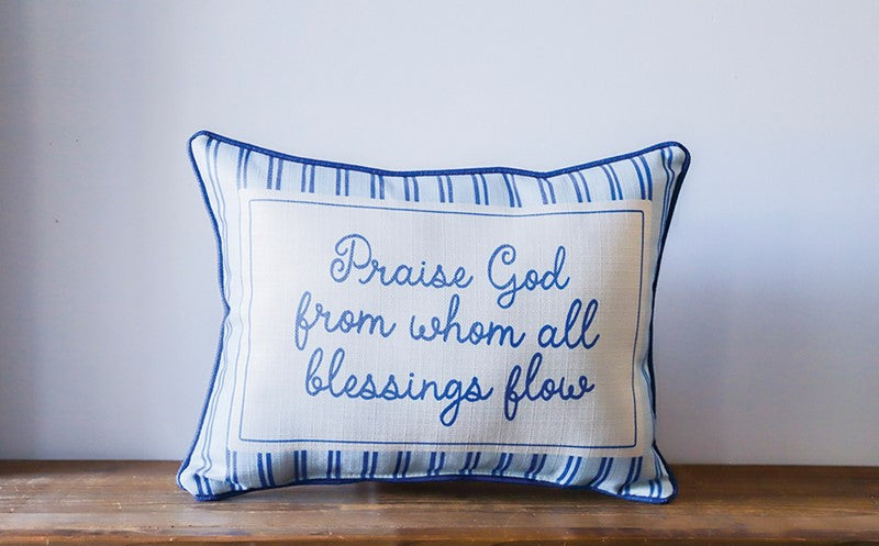 Doxology Stripe Pillow + Piping BLUEJAY