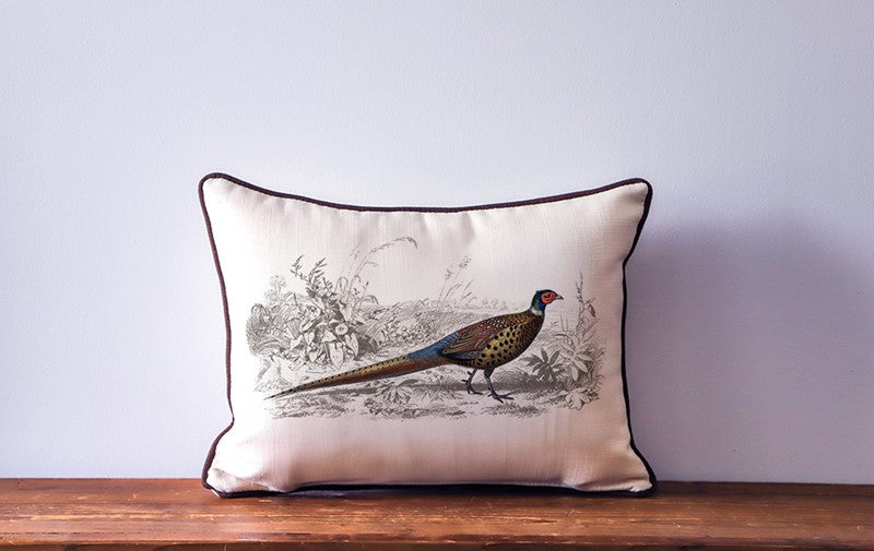European Pheasant Pillow + Piping CHOCOLATE