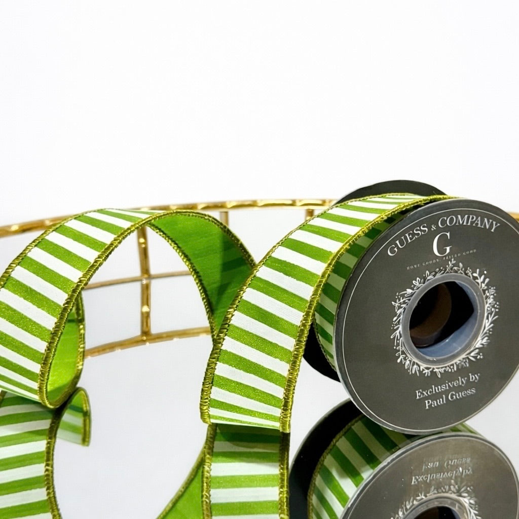 1.5"x5yd Grass Green Stripe Ribbon with Grass Green Dupion Back