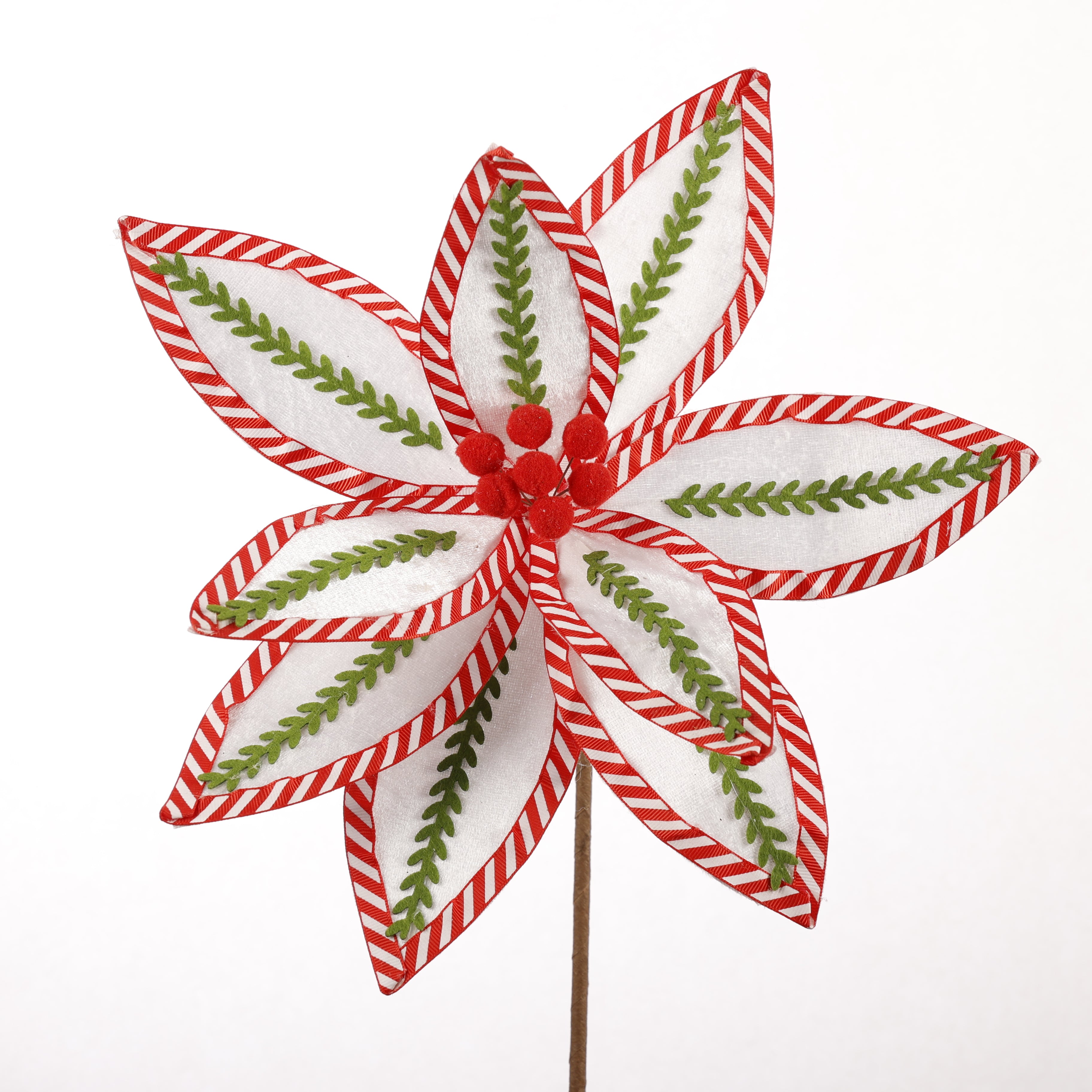12.5" WHITE/GREEN/RED POINSETTIA