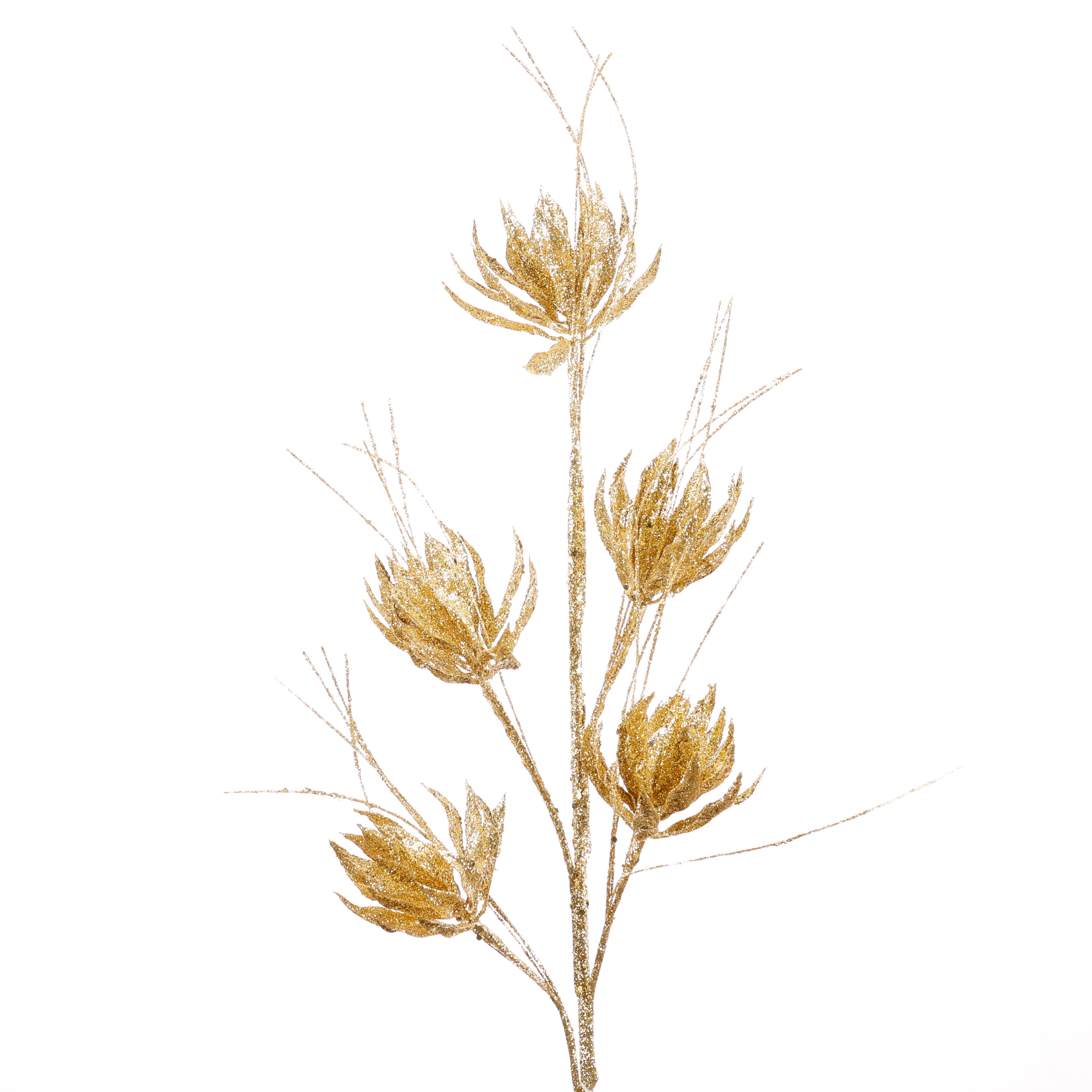 Bring a touch of elegance and luxury to your home decor with our 30.5" Gold Leaf Spray! This stunning piece adds a touch of sophistication to any space and instantly elevates the ambiance. Its intricate design and gold finish are sure to catch the eye and make a statement. Add a touch of opulence to your home today!