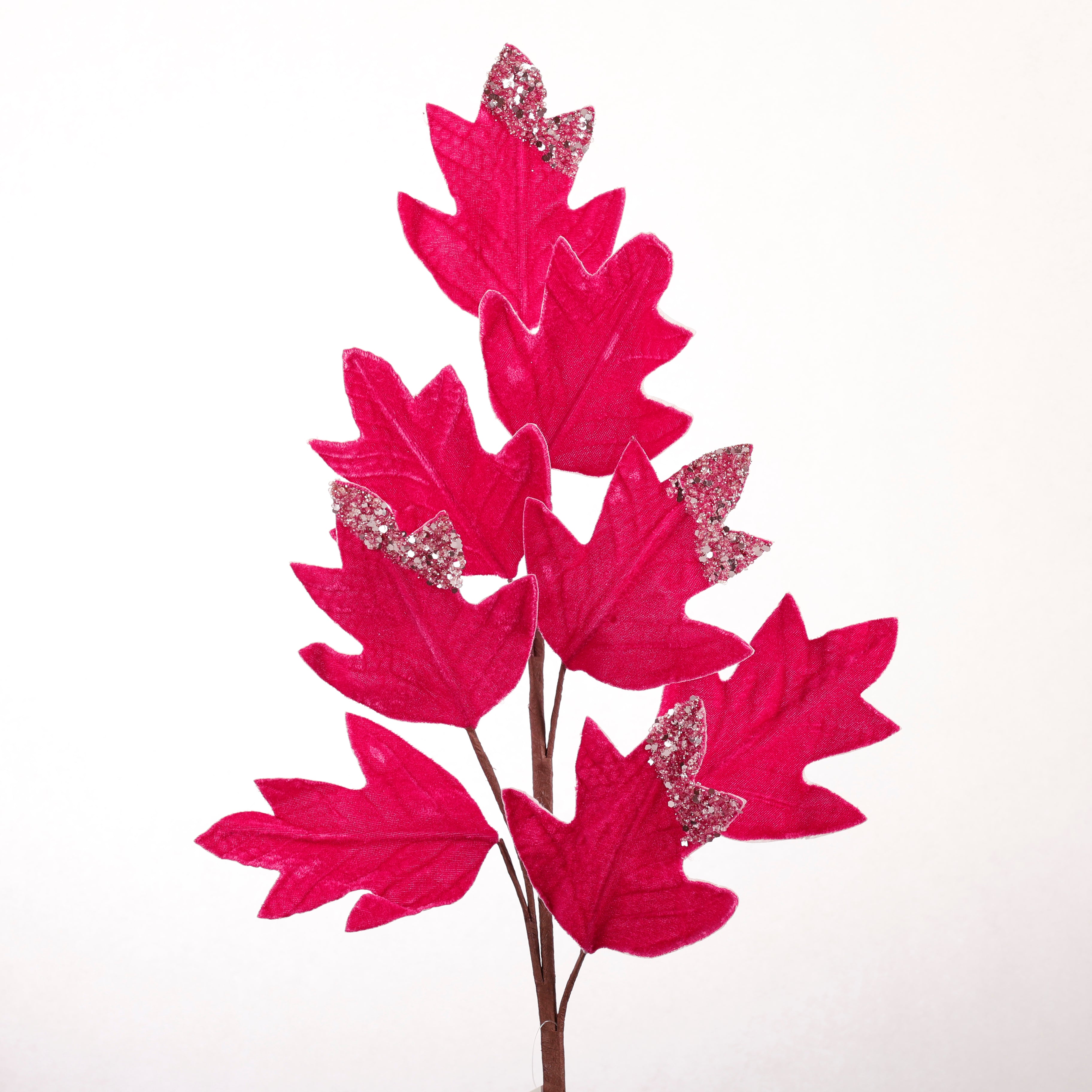 27.5" FUSCHIA BEADED VELVET OAKLEAF SPRAY
