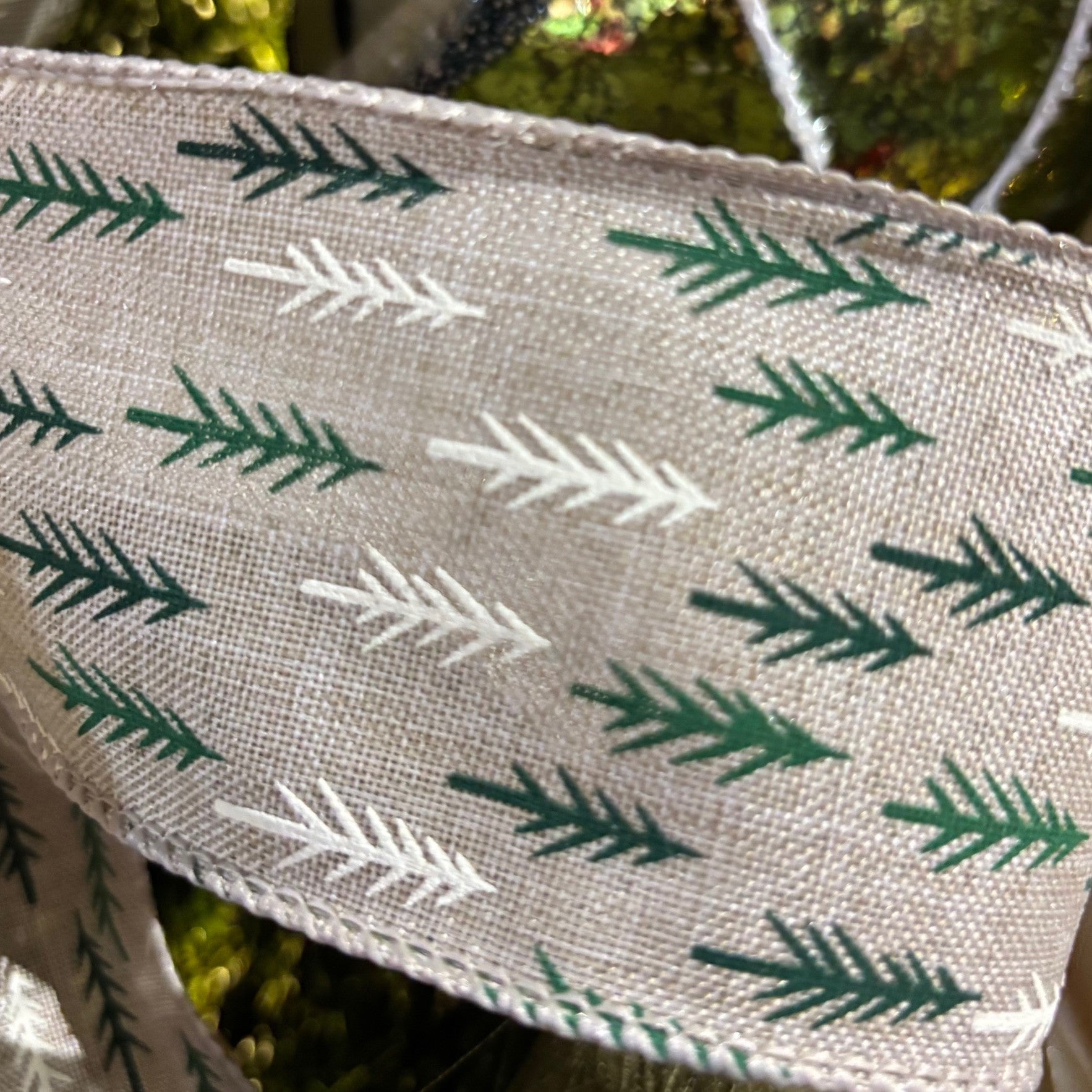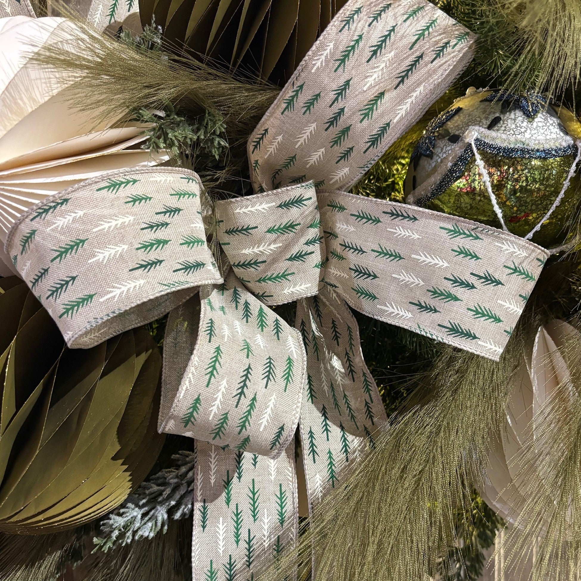 Add a touch of natural charm to your crafts and décor with this 2.5" wide by 10-yard ribbon featuring a classic tree pattern. Its natural base color pairs effortlessly with seasonal themes, making it perfect for gift wrapping, wreaths, and holiday decorations. Durable yet flexible, this ribbon lets you create elegant bows and accents that enhance any project with rustic warmth and style.