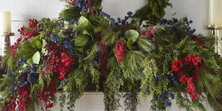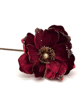 22" Velvet Poinsettia Spray-NAVY/GOLD v1