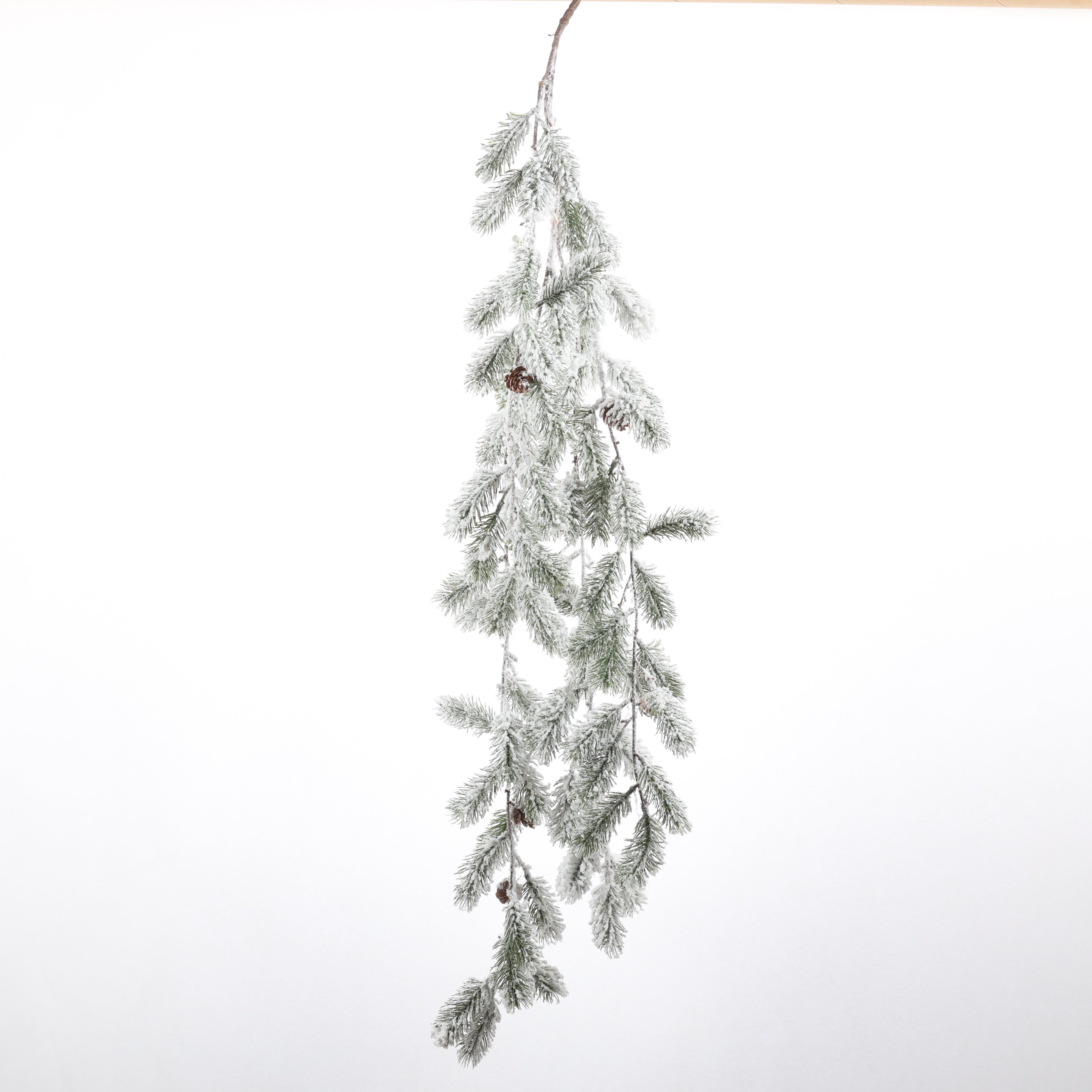 Add a touch of winter wonder to your space with this 47" flocked spray-green and white decoration. Its lush, snow-kissed branches create a festive, natural look that enhances any holiday setting. Perfect for mantelpieces, doorways, or centerpieces, it brings a fresh, elegant charm that lasts throughout the season. Elevate your décor with this beautiful, easy-to-use accent.