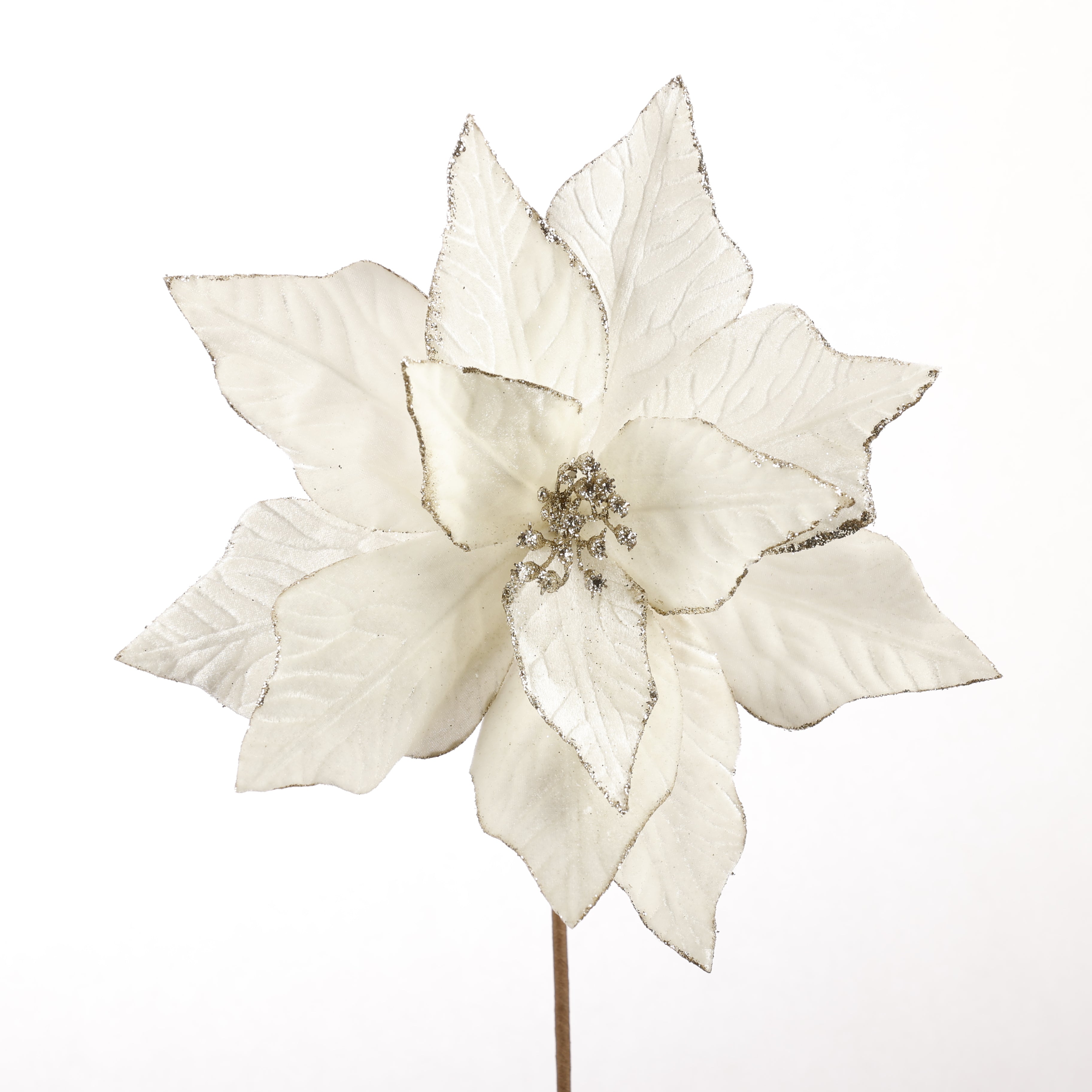 Elevate your holiday décor with this 20" Ivory Poinsettia Spray. Its elegant ivory petals bring a timeless charm to any arrangement, adding a touch of sophistication and festive warmth. Perfect for wreaths, centerpieces, or mantel displays, this spray effortlessly enhances your seasonal decorations with classic beauty.